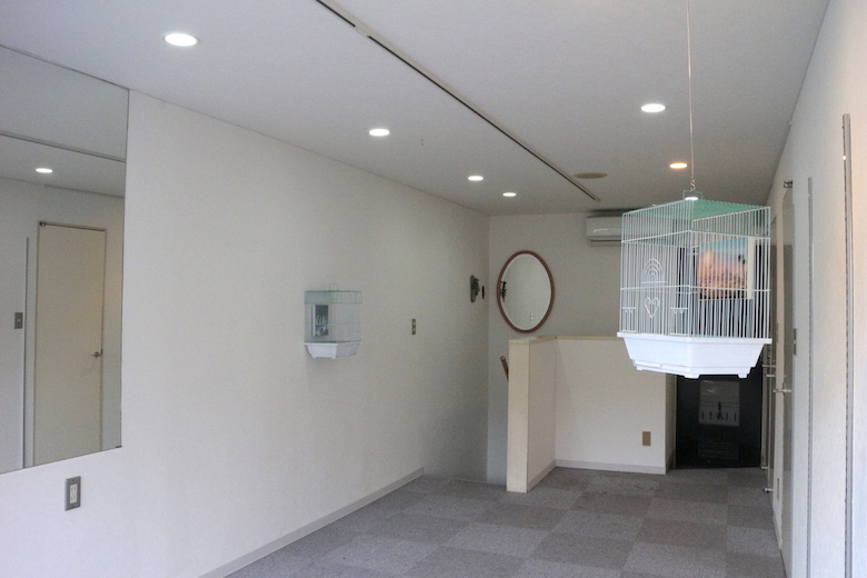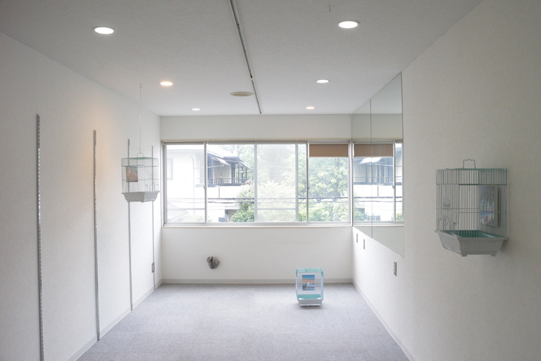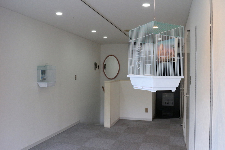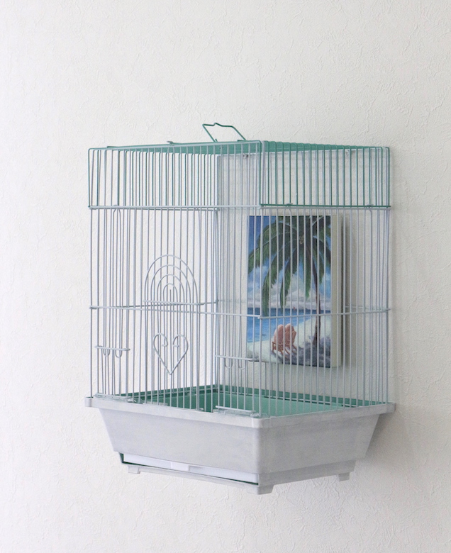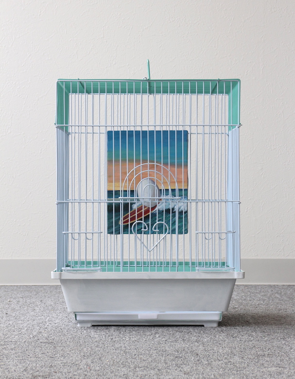 artist : COBRA title : Story of eggs ( bird gallery for bird) media : bird cage , acrylic on canvas size : 21cm x 30cm x 39cm, 18cm x 14cm , year : 2019