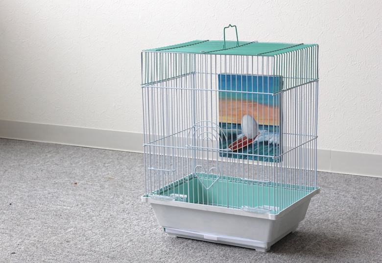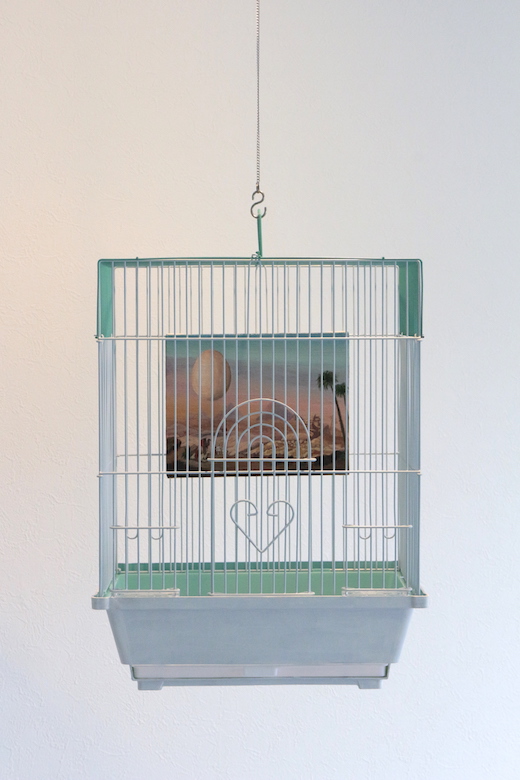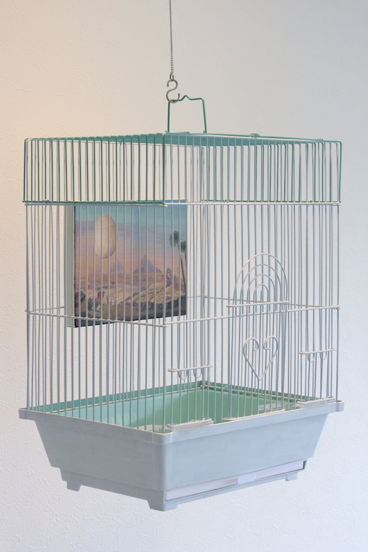 artist : COBRA title : Story of eggs ( bird gallery for bird) media : bird cage , acrylic on canvas size : 21cm x