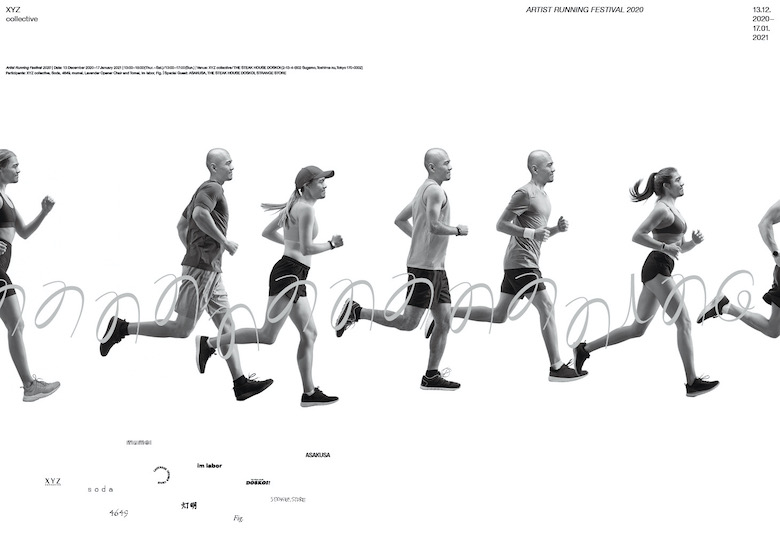 XYZcollective Artist Running Festival 2020.12.13 - 2021.01.17 ※Winter Holiday (冬期休業) 12/28-01/08 ※コロナ感染症拡大防止のため一部営業時間を変更しております。 営業時間:Thursday - Saturday 1pm - 6pm , Sunday 1pm - 5pm Participants / Artists XYZcollective / Maki Katayama 片山真妃 Soda / Ei Arakawa 荒川医 4649 / Yusuke Abe 安部悠介 mumei / Yusuke Muroi 室井悠輔 Lavender opener chair and Tohmei / Yoko Pinkham ヨウコ・ピンカム Yuki Takahashi 高橋佑基 im labor / Francesca Blomfield フランチェスカ・ブロムフィールド Fig. / Shizuka Okada 岡田理 Special Guest: ASAKUSA (Asakusa) / Ming Wong ミン・ウォン The Steak House DOSKOI (Sugamo) & Strange Store (Daikanyama) Ken Kagami & Tan Kagami 加賀美健 加賀美丹 Cooperate :Taka Ishii Gallery、Kodama Gallery , MISAKO&ROSEN