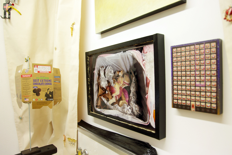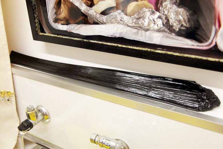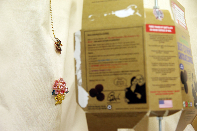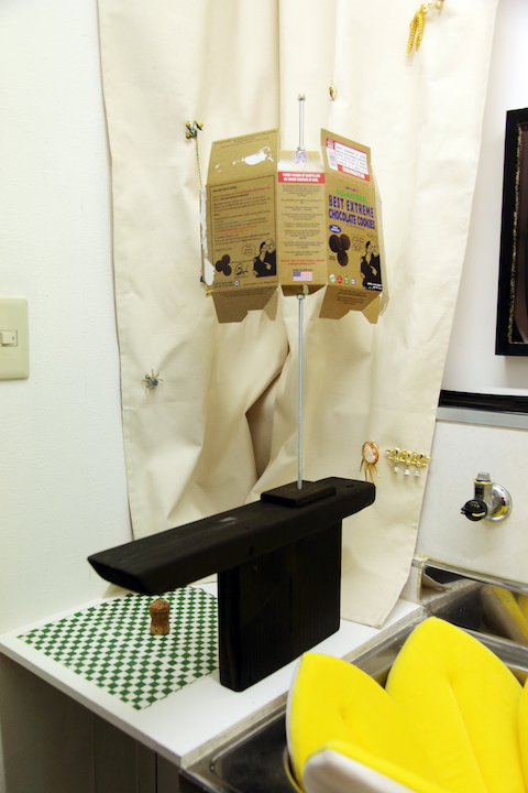 Naoki Sutter-Shudo title : Best Extreme Black Ship / media : Bart & Judy's Cookie package, hardware, stained wood size : 47.5 x 34 x 78.5 cm / year : 2017
