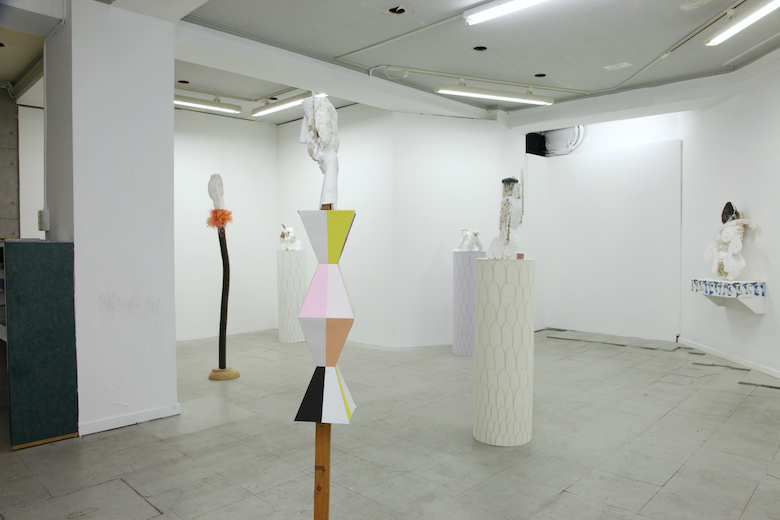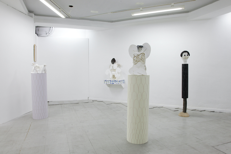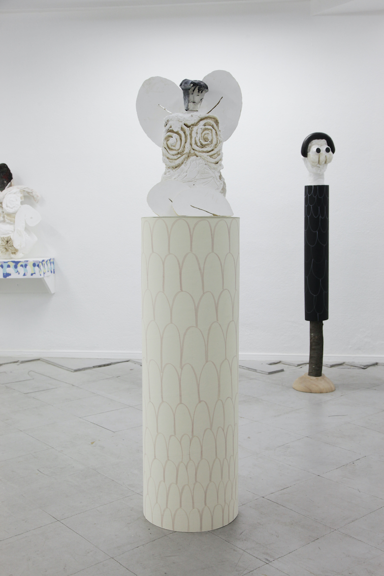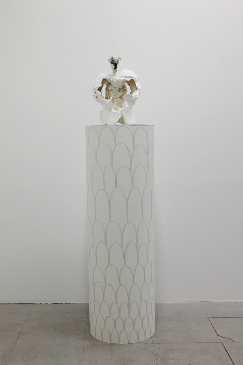 artist : Koji Nakano 中野浩二 title : 「わき」“Waki" media :plaster, wood, paper size : h47×w35×d18cm *pedestal h96x31x31cm year : 2019