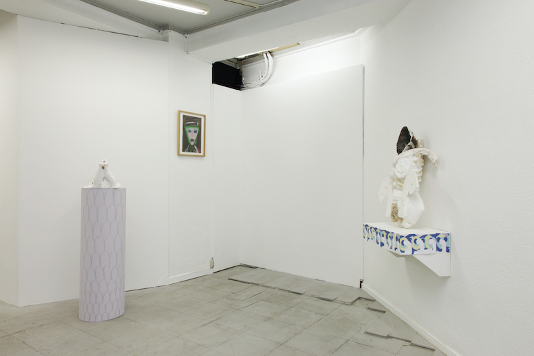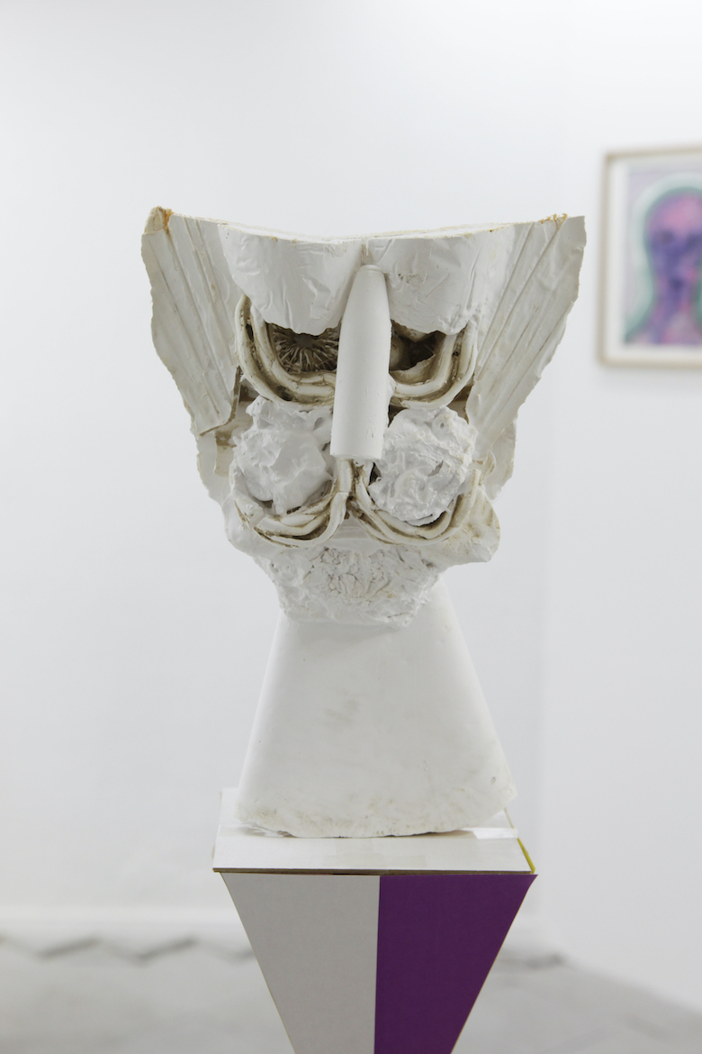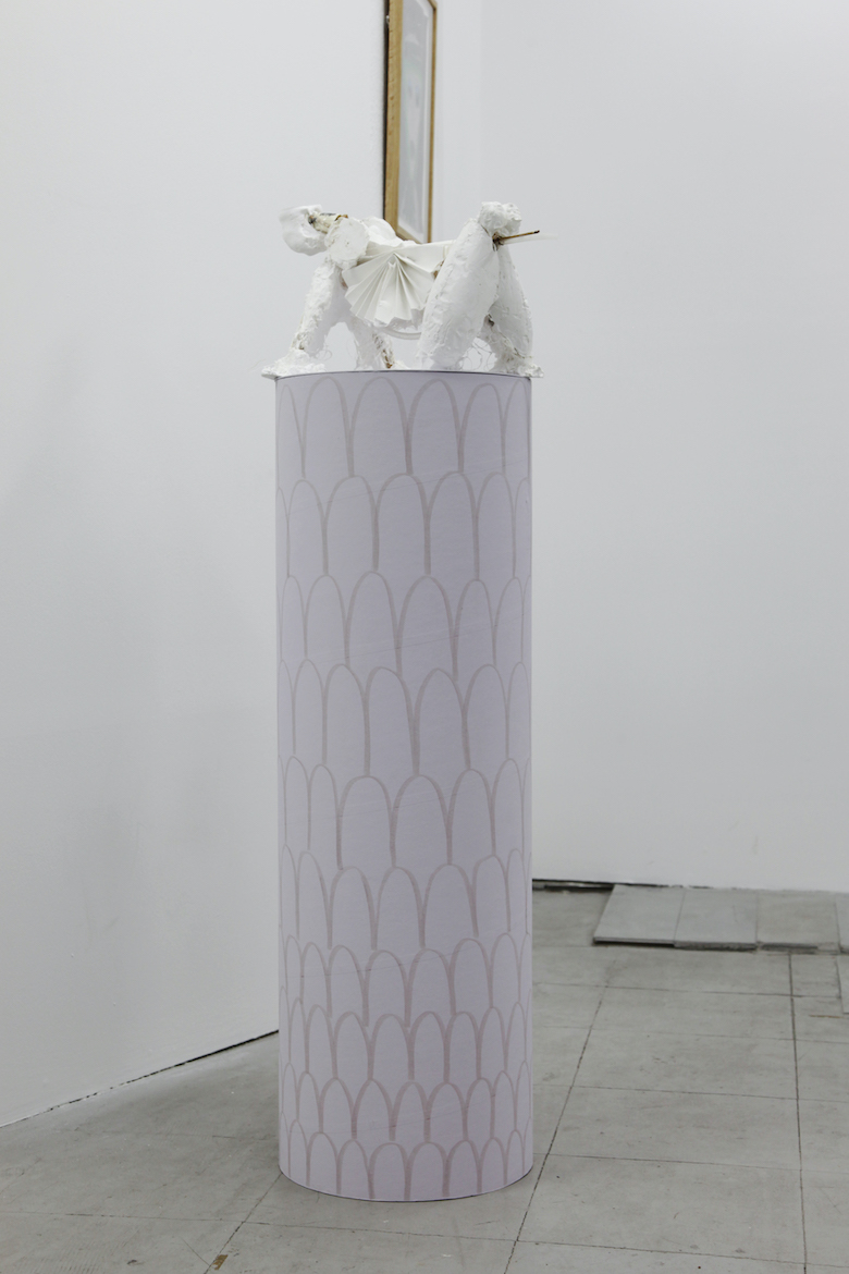 artist : Koji Nakano 中野浩二 title : 「ペタ」“Peta” media : plaster, wood, paper, other size : h23×w28×d38cm *pedestal h96x31x31cm year : 2019