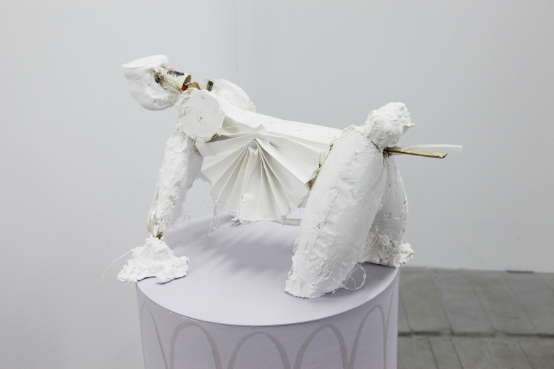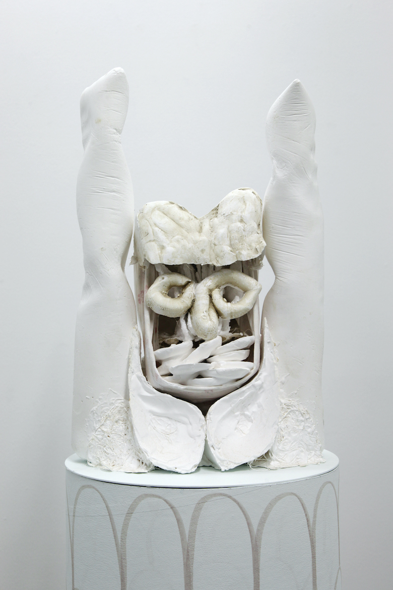 artist : Koji Nakano 中野浩二 title : 「バンザイ」“Banzai” media : plaster, cloth size : h44×w30×d17cm *pedestal h96x31x31cm year : 2019