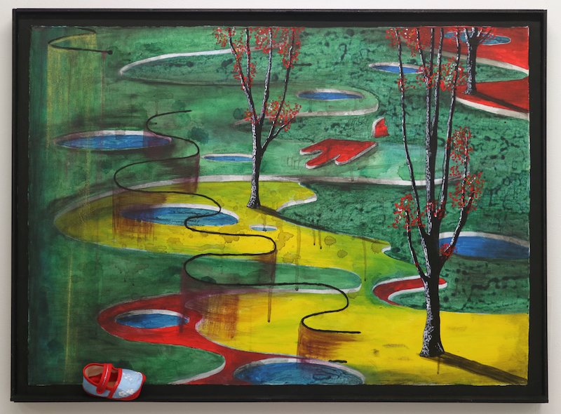 artist : Veit Laurent Kurz title : media : Acrylic, pen, chalk , and ink on canvas and wood size : 75cm x 55cm x 6cm year : 2018