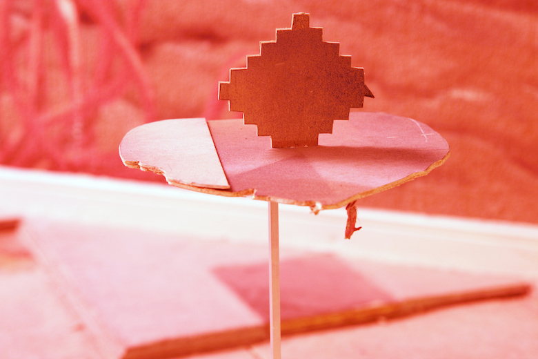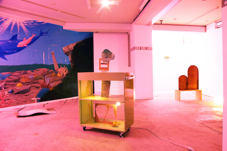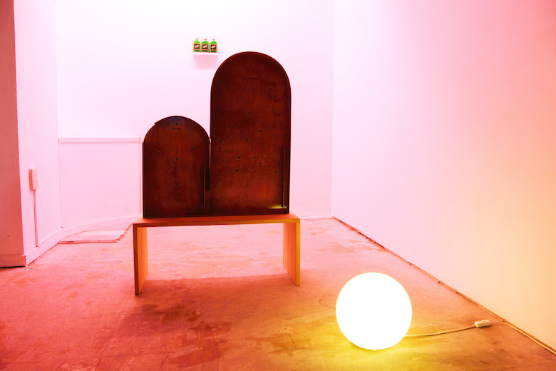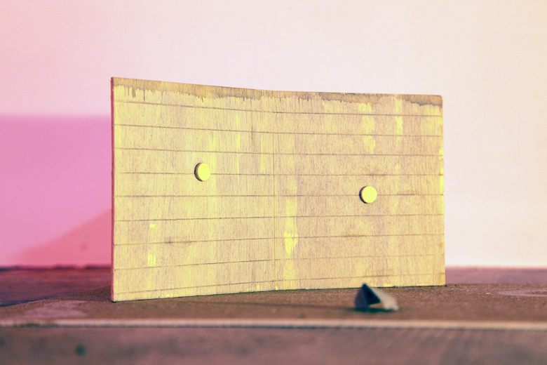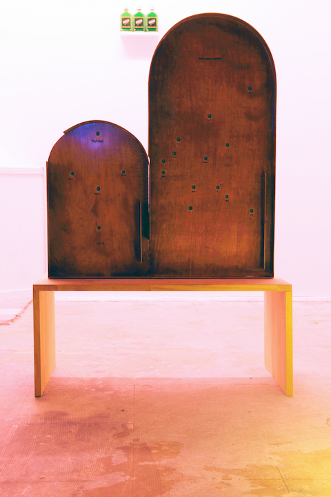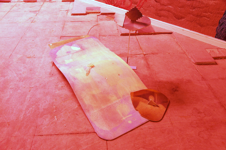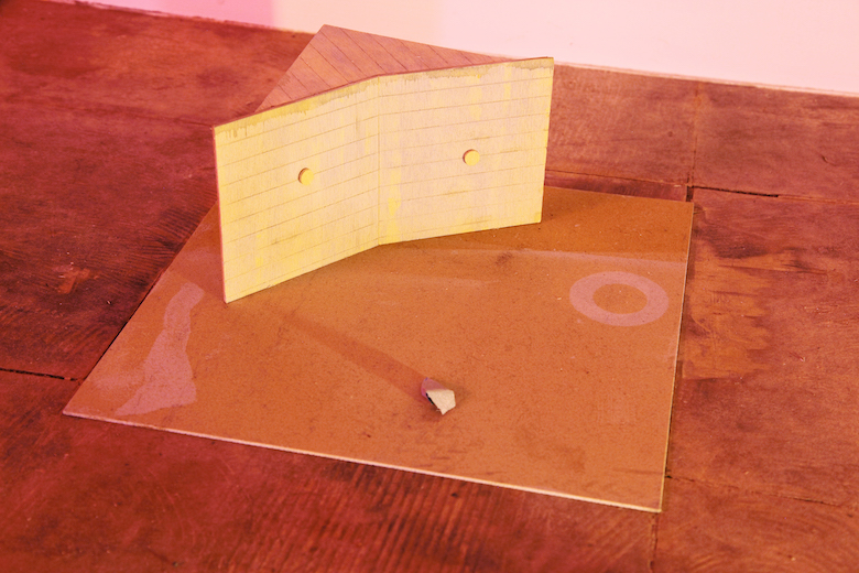 Kenji Ide title : board - O / media : venner, water color, floor sheet, trash / size : 81 x 48 x 41 cm / year : 2017