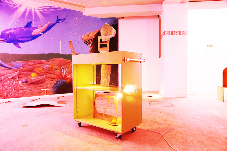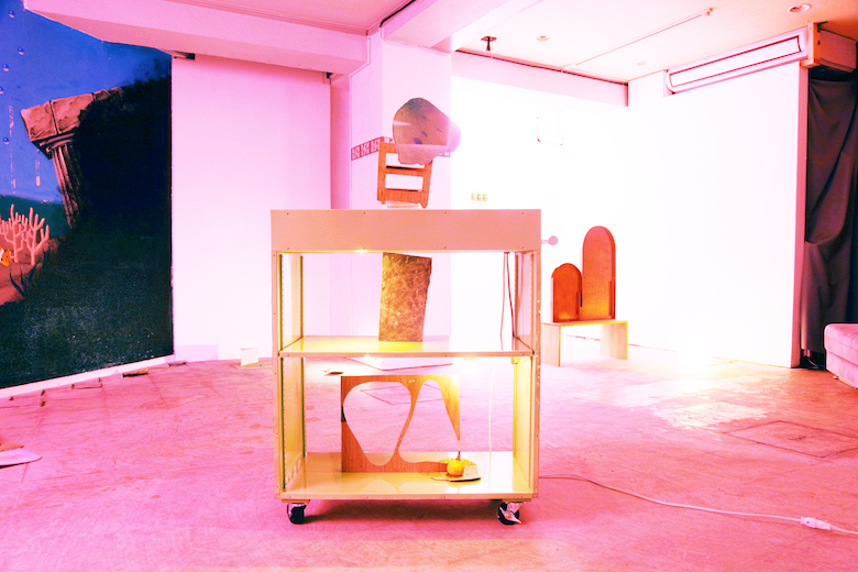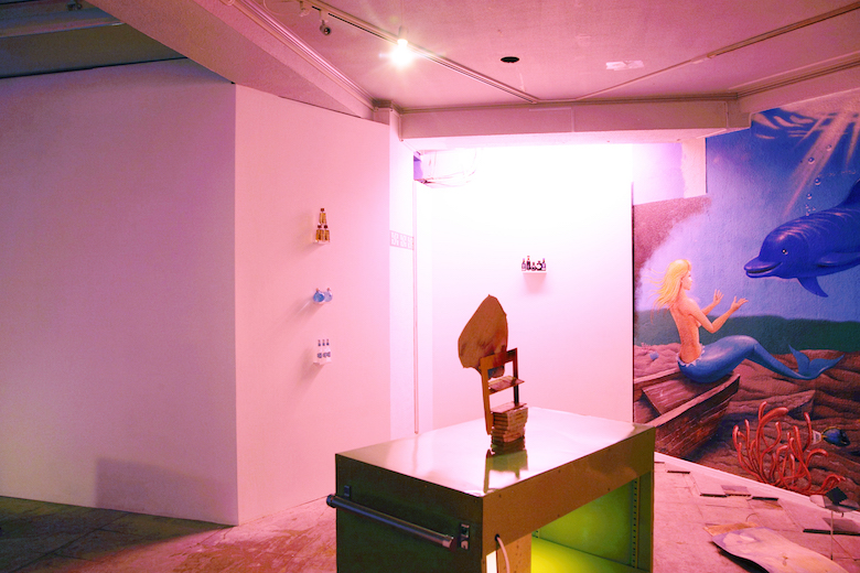 Kenji Ide title : scape - chill / media : venner, water color, floor sheet, trash / size : 30 x 30 x 11 cm / year : 2017