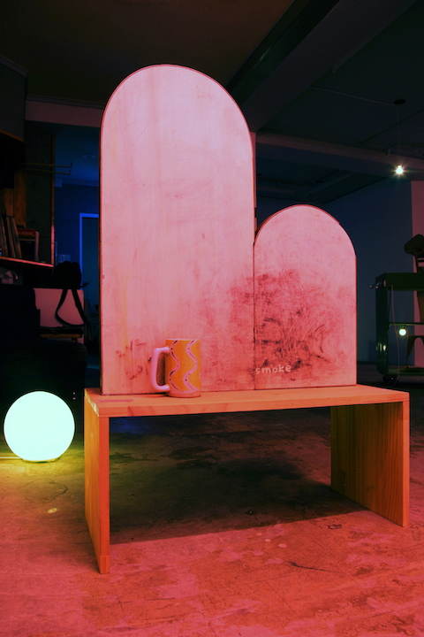 Kenji Ide title : board - J / media : veneer, urethane varnish, ash, mug, J's desk / size : 74 x 30 x 110cm / year : 2017