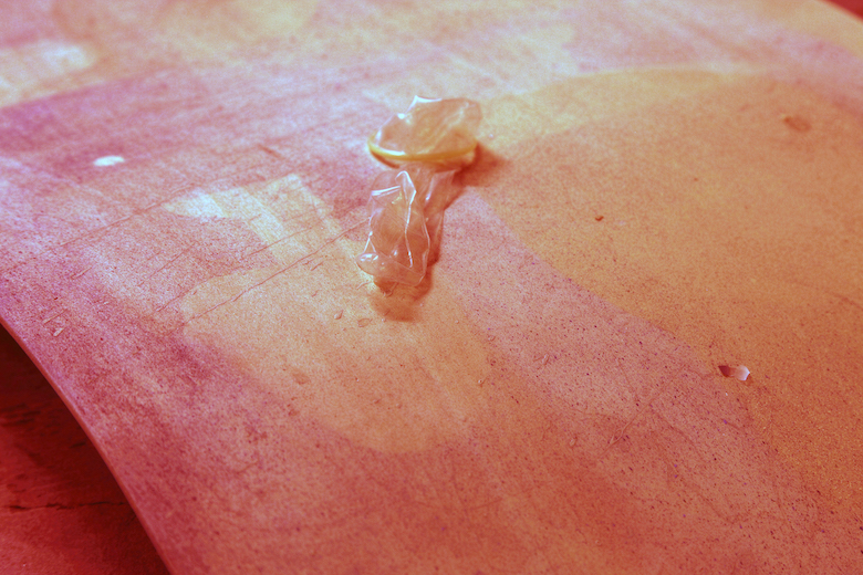 Kenji Ide title : vomit (drawing - 1) / media : venner, lacquer spray color / size : 17 x 13 x 2.3cm / year : 2017