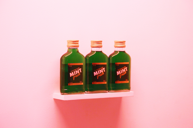 Yuki Kimura title : MINT MINT MINT / media : three liquor bottles / size : 20 x 12.8 x 2.7cm / year : 2017
