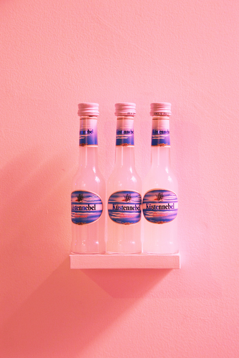 Yuki Kimura title : 1800 Ocean Küstennebel / media : eight liquor bottles size : 9.2 x 19.5 x 3cm , 12 x 8 x 6.6cm , 9.7 x 14 x 3.5cm / year : 2017