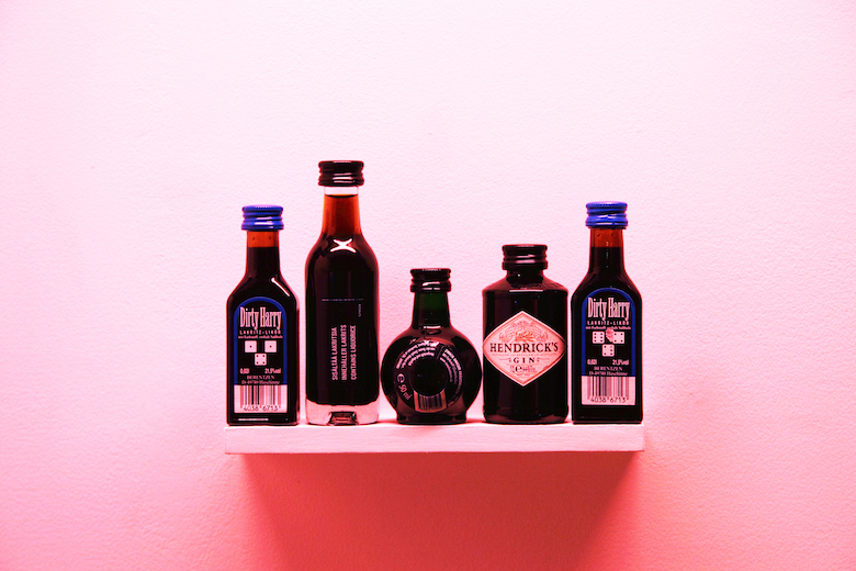 Yuki Kimura title : DSUHD / media : five liquor bottles / size : 18.7 x 11.5 x 4cm / year : 2017