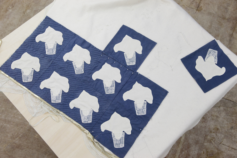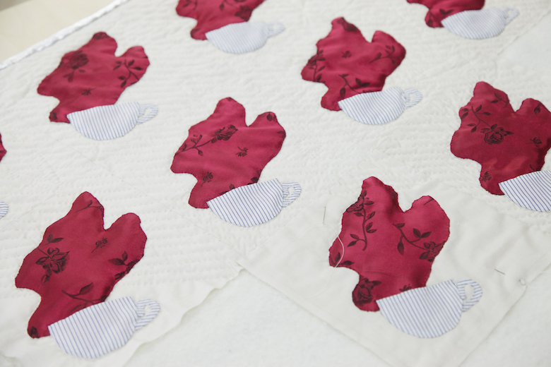 as stickers, candy wrappers and strips of cloth, she creates handmade